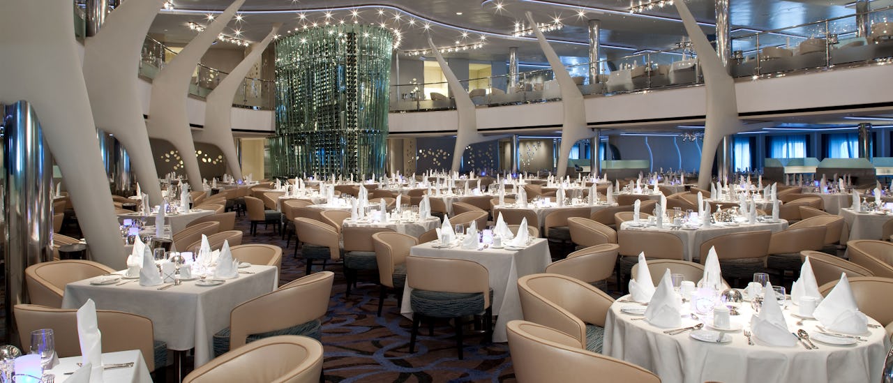 The main á la carte dining room, the Oceanview buffet and a range of speciality restaurants serve up first class food experiences onboard.