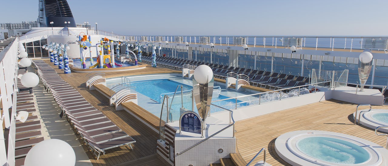 Enjoy lovely pools and jacuzzis, fitness center and spa on the upper decks.