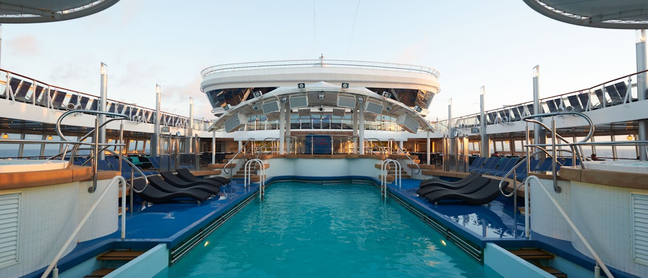 Experience wonderful sea views from a wide range of pools, spa and gym at the top of the ship.