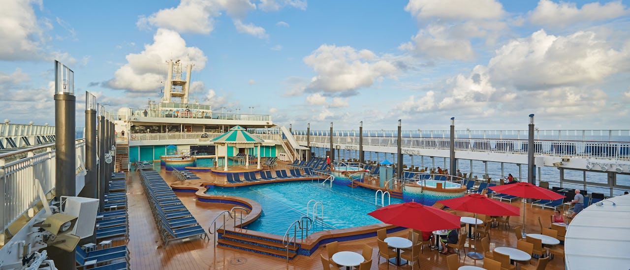 Experience wonderful sea views from a wide range of pools, spa and gym at the top of the ship