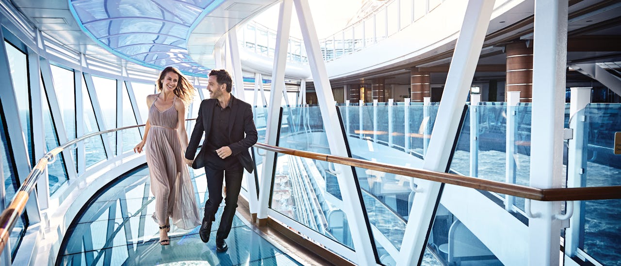 Experience an unforgettable walk on The Seawalk – a glass bridge on the pool deck 40 meters above the ocean.