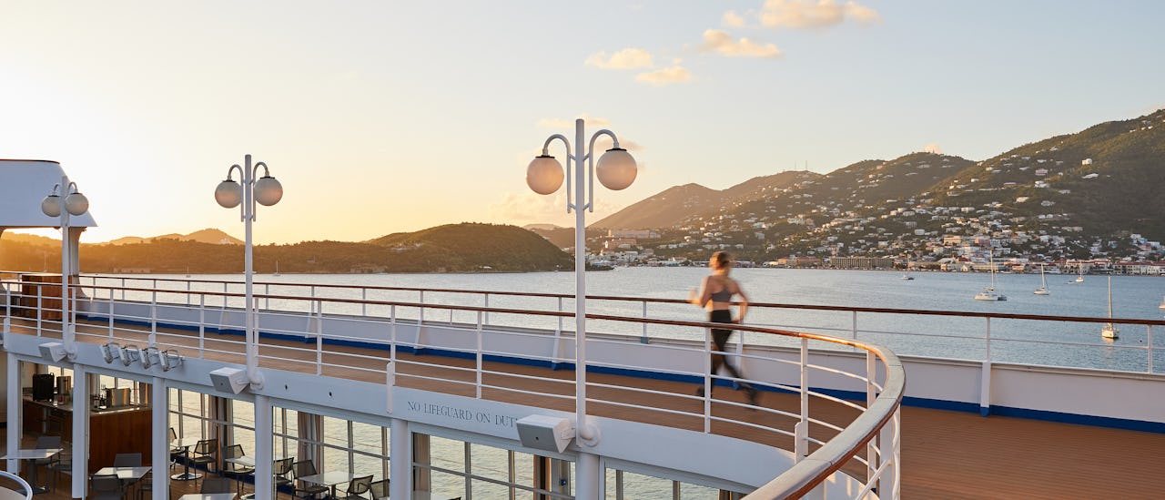 Enjoy the views from the observation lounge, visit the art Gallery, exclusive shops or take a run around the deck.